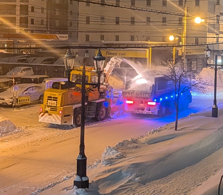 そのすぐ後ろに、除雪車がぴったり張り付いている。