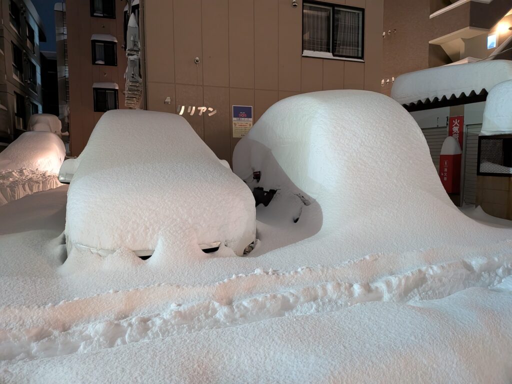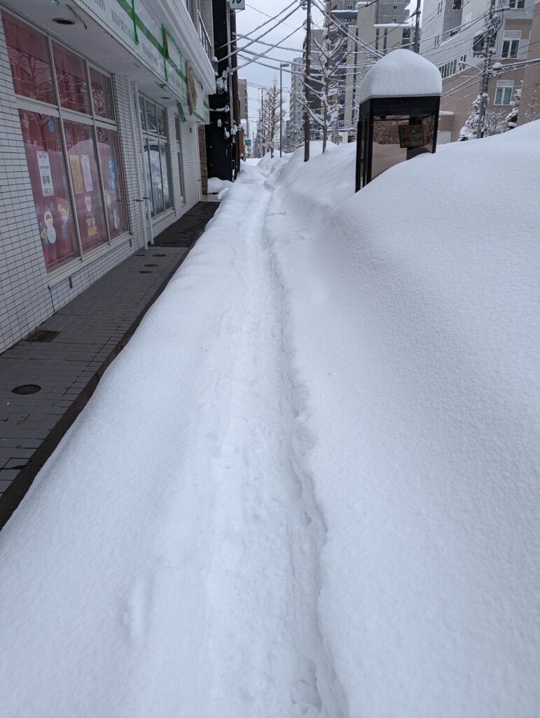 街に繰り出すと、想像していたとおり雪山がそこら中にある。歩道は一本の溝みたいになっていて、すれ違うこともできない。